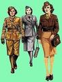 Во время Второй мировой войны женщины в форме воспринимались как разумная необходимость. Слева на рисунке женщина в форме Британского вспомогательного корпуса ATS. Основой формы служили куртка цвета хаки и такая же юбка до колена длиной. Блуза, галстук и чулки тоже защитного цвета, хотя чуть светлее. Форма всегда была фабричного производства. На женщине на рисунке приобретенная ею самой "пилотка" с кокардой корпуса ATS. На погонах есть только буквы ATS без венка и короны. На куртке четыре кармана - два на бедрах, два на груди; все они застегиваются на пуговицы. Талию охватывает прикрепленный к куртке пояс в тон, с пряжкой спереди посередине. В верхней части обоих рукавов прикреплены соответствующие чину белые шевроны. На ногах у женщины коричневые полуботинки. Через правое плечо перекинут ремень с предписанным по уставу противогазом.
